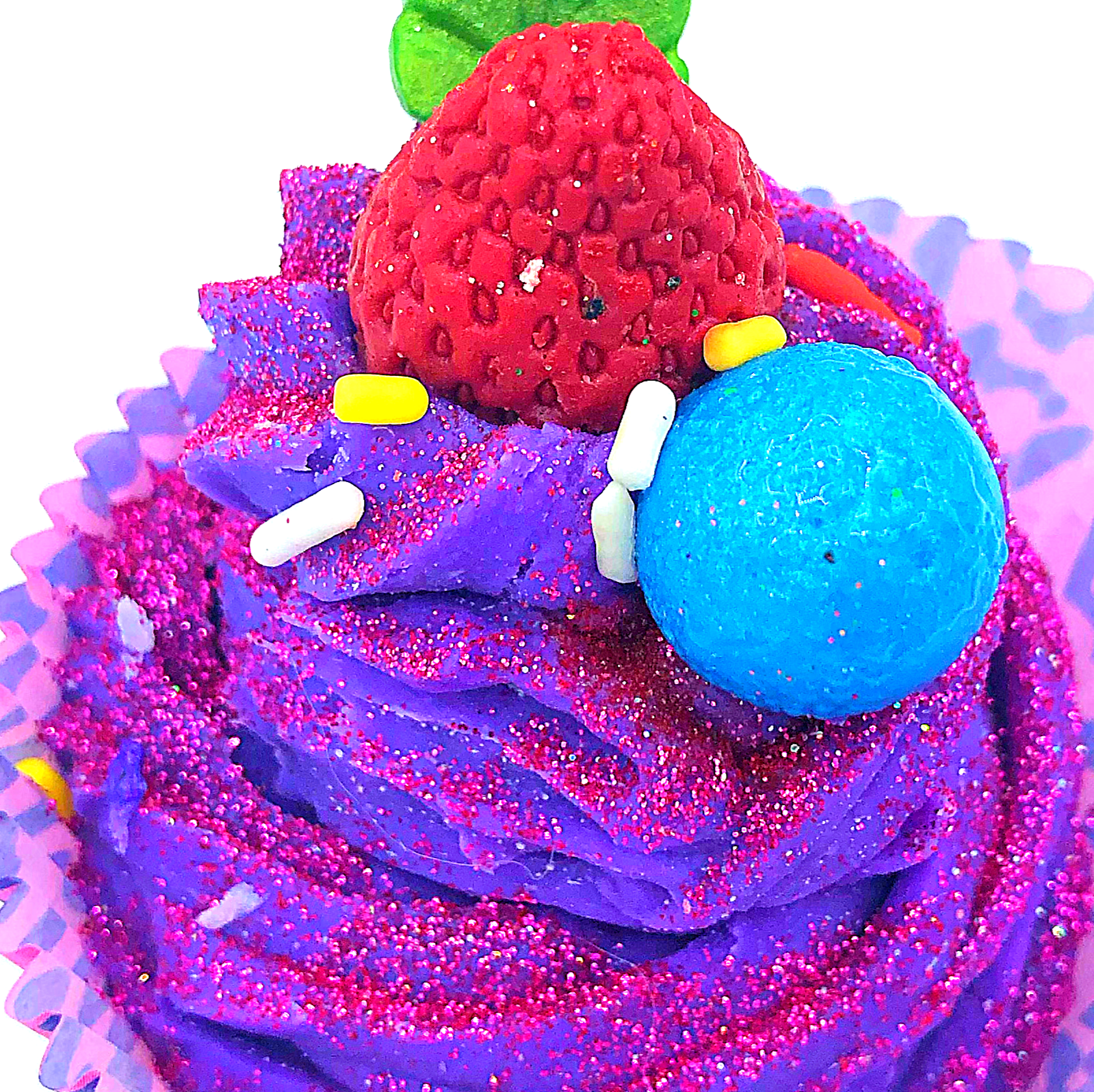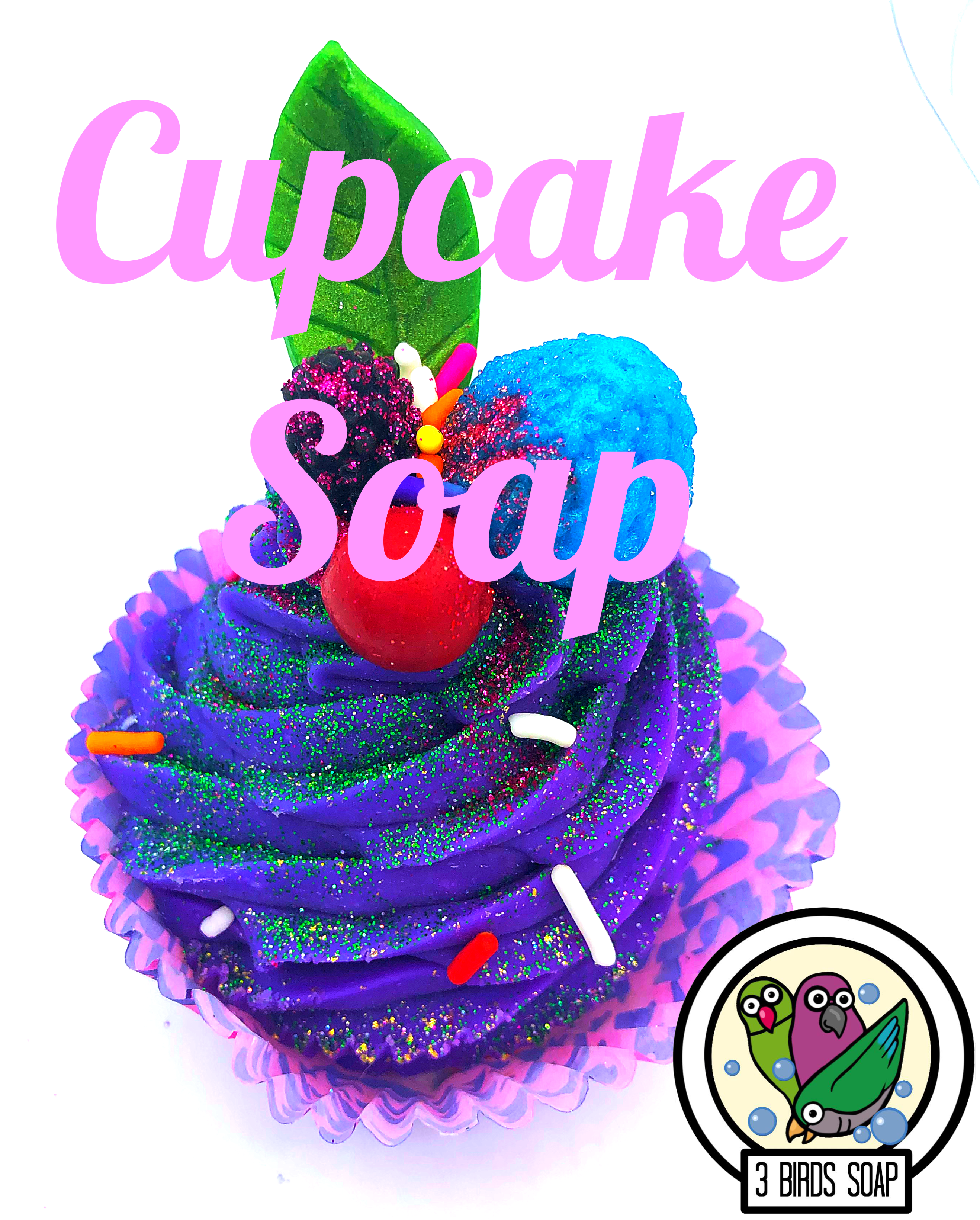 I colored the remaining batter purple using both mica and high quality food color and used it to pipe soap cupcakes with a large closed star tip. I used previously made melt and pour embeds to top them. They look hodge podged together, but hey, it was my first attempt.